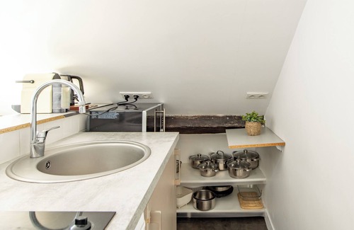 The attic apartment offers an unforgettable view of the Parisian rooftops, adding a special and charming touch to your stay. You can see the Eiffel Tower from above the rooftops!