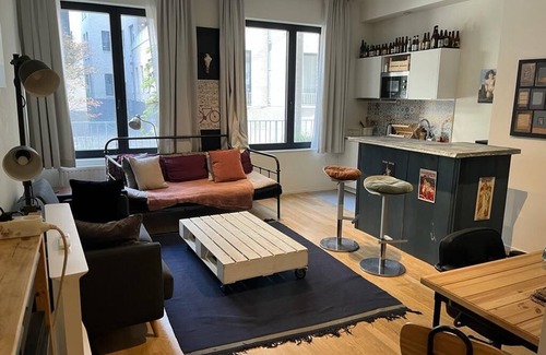 Charming loft studio - Grand Place is located in Quartier Marais-Jacqmain - Wijk Marais-Jacqmain. Charming loft studio - Grand Place provides accommodation, featuring Fireplace/Heating, Child Friendly, Internet, among other amenities. This Apartment features Fireplace/Heating, Child Friendly, Internet, to make your stay a comfortable one.