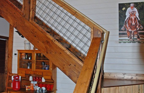 Welcome to our log cabin Horseshoe Ridge, newly built in 2017! It was lovingly created using unique elements - Timbers and lumber from a turn-of-the -century dairy barn, and lumber milled from trees where the cabin now stands! Dramatic wall of windows facing into the forest valley below, and soaring ceilings of Colorado blue spruce. Even the headboards are made of gates from the dairy barn. Horeshoe Ridge is situated on 10 wooded acres, and owner lives on property. There are three bedrooms and two full baths. Washer/Dryer included.