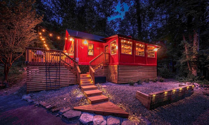 Applemoon is a dog-friendly 1960s log cabin nestled on an acre of the Blue Ridge Mountains. Two bedrooms with Smart TVs, a porch with hanging daybed and bistro table, and a cozy game loft will give you plenty of space to relax. Outside, enjoy dinner on the huge deck or build a fire and don't forget to look up at the night sky!