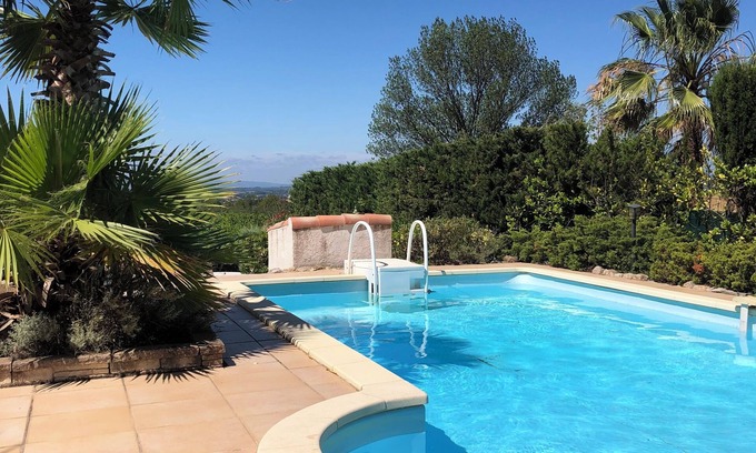 Discover the beauty of Oupia from this charming 2-bedroom apartment. With private pool, large enclosed garden. BBQ, sun beds, and beautiful views over the valley with vineyards. The house is equipped with 2 queen beds, 2 bathrooms equipped with showers and hair dryers, and amenities like heating, WiFi, and a washing machine, guests will have a tremendous stay. Whether you're exploring the city or relaxing in the cozy living space, this apartment is the perfect home away from home. We look forward to welcoming you to our place. With us you can also enjoy a wonderful relaxing massage, a culinary dinner or a pampering breakfast.