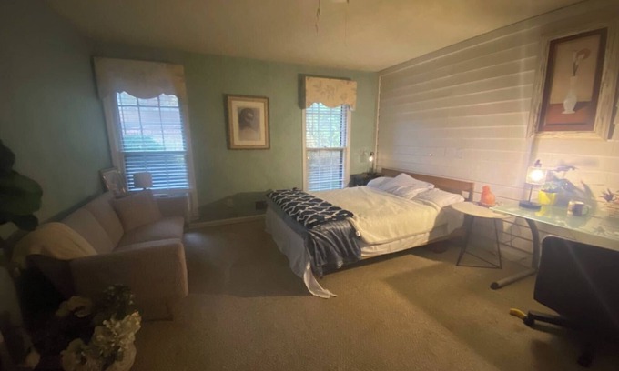 A huge main bedroom without TV Located in Marietta but near Kennesaw , this charming bedroom is a dream. With a cozy bathroom stocked with amenities, Convenient location, close to the highway but no noise at all.