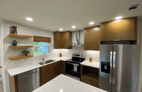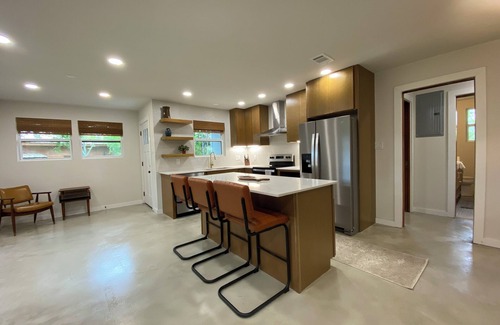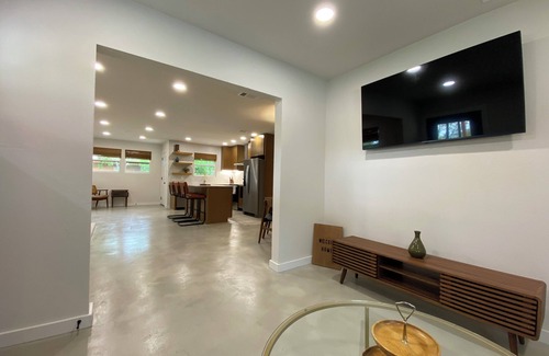 Come relax at this stylish home that's less than a block away from Lake LBJ! This completely rehabbed midcentury home has been upgraded with all of the modern amenities while maintaining it's retro charm. 2.5 bedrooms, 1 bath. Dedicated office space if you need to work away from home. Comfortably sleeps 6. Boat parking, fenced yard, detached game room and outdoor fish cleaning station. Granite Shoals boasts 8 waterfront parks with public boat access. Just a short drive from historic Marble Falls and Horseshoe Bay, as well as famous Inks Lake Caverns, hiking, and more. Top rated golf courses, shopping, and locally famous restaurants! Enjoy the gorgeous Texas hill country scenery and deer walking through the property around the fenced yard. Whether you're traveling for work, fun, or both, the Maple will meet all of your needs. This property already has superhost status on the *other* listing site!