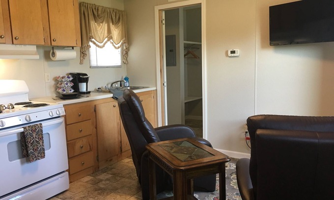 Based on the information received from our partner, the Charming mini mobile home has not specified they are wheelchair accessible. Likewise, there is not an elevator specified as being available at the property. Specific accessibility details may be addressed in the property details section of this page.