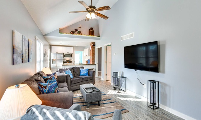 A convenient, comfortable stay awaits at this Pleasant Hill, MO, vacation rental! Whether you're working remotely or looking to explore the area's outdoor hotspots, you'll love relaxing at this 2-bedroom, 1-bathroom home in between. Spend your days biking the nearby Katy Trail, visiting attractions like Powell Gardens, or experiencing all that Kansas City has to offer. After all your favorite activities, refuel with a delicious home-cooked meal and unwind by watching the property's Smart TVs.