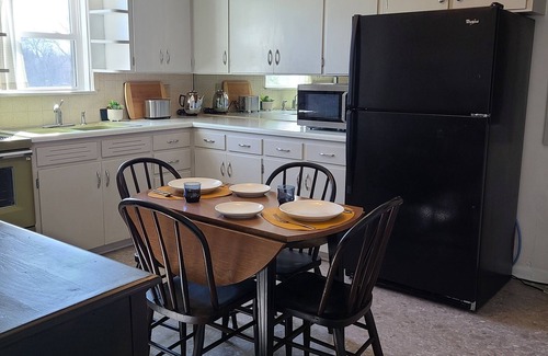 Enjoy a nostalgic experience at this centrally located home that was built in 1954. My wife and I have furnished it with a touch of modern mid century charm There is ample parking in front of the house and we are across the street from Hy-Vee grocery. Although located on a fairly busy street, the house is in a very safe area! At the opposite end of the house in what was the original garage is my one chair salon called Headlines. It has a separate entrance and please be assured that you will not be disturbed by the business activity. We look forward to your visit!