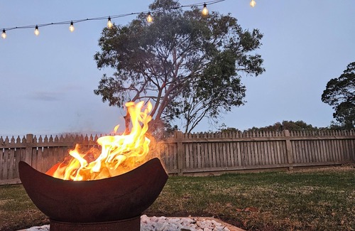 Step inside our thoughtfully designed bungalow, offering a calm and cozy escape with 3 bedrooms—including two queen beds and two king single beds. Stay warm with the crackling wood fire, cool with air conditioning, and connected via WiFi. Whether you're working remotely, unwinding with a book, or settling in for a movie night, you’ll feel right at home.