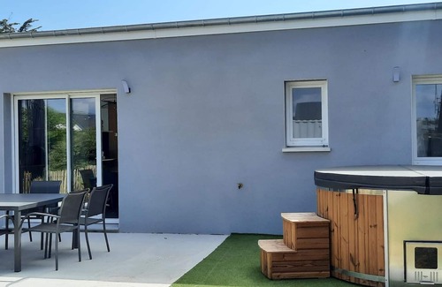 Single-story house adjoining a house. Living room (TV). Kitchenette (induction hob, oven, refrigerator with freezer, microwave, dishwasher, espresso machine). Bedroom 1 (1 double bed 140x190), bedroom 2 (1 double bed 140x190), bedroom 3 (1 double bed 140x190). Shower room (walk-in shower) with toilet (washer-dryer). Baby equipment on request. Reversible aerothermal heating (air conditioning). All charges included. Sheets and towels provided. Beds made on arrival. Cleaning service at an additional cost. Enclosed garden. Terrace. Garden furniture. Deckchairs. Parasol. Barbecue and gas plancha. Wood-heated Nordic bath. Private unfenced courtyard (parking). Enclosed garden. As an extension of the seaside resort of Barneville-Carteret, the commune of St Jean also benefits from the magnificent sandy beach facing the island of Jersey. The peaceful residential neighborhoods developed over the years behind the dunes are perfect for families. With the sea nearby, the equestrian center, the golf course, and the bike trails, you'll find the ideal setting for your vacation. Built in 2024, this new house is perfectly equipped and functional. The bedrooms, although small, each benefit from very practical wall storage and make room for the large bathroom and its oversized shower. The living room, with its light, is beautifully decorated and offers access to two terraces. One of them is equipped with a Nordic hot tub for relaxation! Séléna and Gilles, the owners, will take the time to explain its operation and the must-see outings to discover the Cotentin Peninsula.