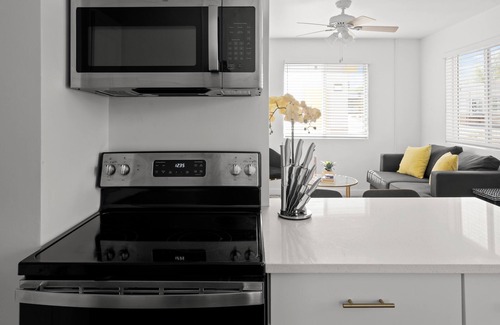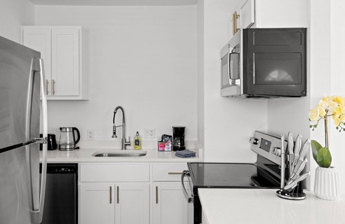 Prepare delicious meals in the fully stocked kitchen, equipped with stainless steel appliances, including a dishwasher for easy cleanup. Whether you're a culinary enthusiast or prefer simple cooking, our kitchen has everything you need to satisfy your cravings.