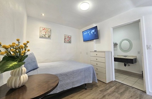 Discover the beauty of Inyokern from this quaint 1-bedroom hotel. The room features a cozy full bed, WiFi, and AC for your comfort. A hair dryer is also provided in the bathroom. Enjoy all that Inyokern has to offer when you stay at our place.Walking distance for charging ports for your electric vehicle and gas stations nearby Sunrise Inn is close to two hwys perfect spot to rest and shower.