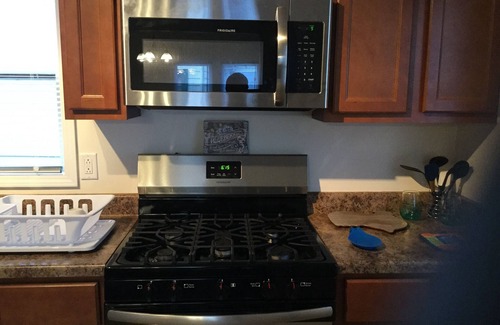 New modern appliances such as, refrigerator, stove, oven, microwave, dishwasher and coffee maker.