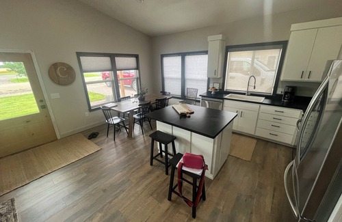 Get ready to relax in this lovely 3-bedroom house in the Spring Creek Recreation Area north of Pierre, SD. This awesome property offers a tranquil escape for guests looking to unwind and recharge. The house features an open and relaxing living area with modern amenities ensuring a comfortable stay. This newly constructed home sits next to Lake Oahe surrounded by some of the best fishing and hunting in the region. There are three bedrooms and 2 baths. The master bedroom has a queen bed, connected on-suite bathroom, with access to the back patio. Bedroom two includes a queen bed and bedroom three has a full bed. Feel free to reach out to us during your stay - we're happy to suggest local spots to check out.