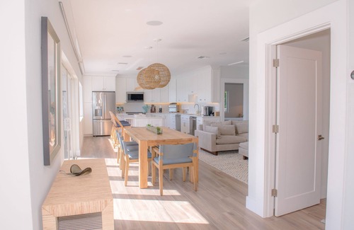 Step out the door to your private oceanfront beach with pool and dock at Midnight Runner. The property features two living spaces, downstairs and upstairs. You will enjoy amazing ocean views from the 3rd floor-viewing porch. Enjoy a nice lunch out on the dock, which includes a round concrete picnic table. Midnight Runner has all the amenities for you and your guests to enjoy, at your private home away from it all!
