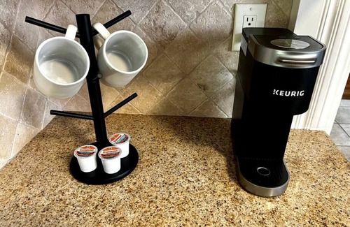 Along with all the mixing bowls, glass tupperware, bakeware, utensils, pots and pans, the kitchen also includes a stove, fridge, dishwasher, Keurig coffee bar, full dish set and glassware (tall glasses, short glasses, wine glasses, champagne glasses, shot glasses and a cocktail shaker) along with a Brita pitcher.