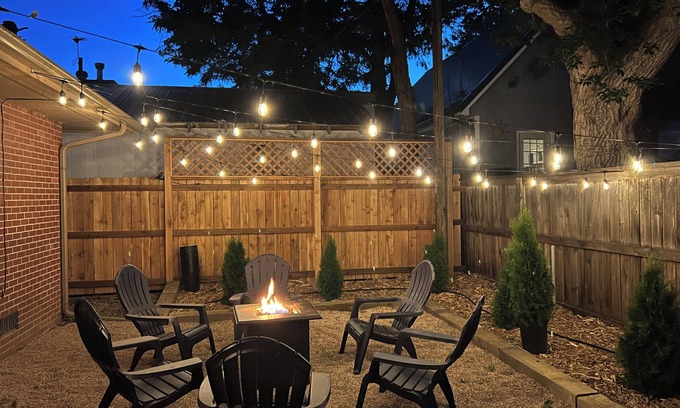 For your convenience, the home offers easy self check-in with a secure keypad entry. Step outside to your private backyard oasis, surrounded by a full privacy fence and shaded by a large tree, perfect for relaxing on hot summer days. Enjoy evenings around the firepit, fire up the grill, or unwind in the comfortable outdoor seating area with friends or family.