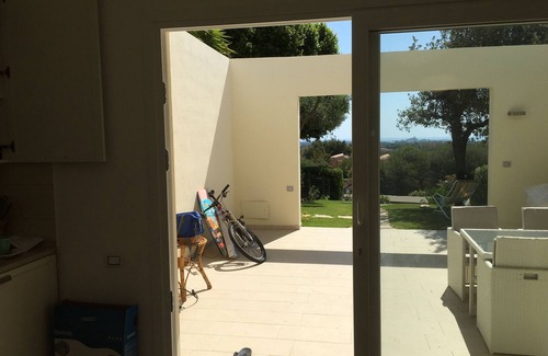 A brand new beautiful house with a garden and a large patio overlooking the sea, only 3 km. With just a few minutes by car from some of the most beautiful beaches in southern Sardinia: Chia, Tuerredda and Santa Margherita. The house is inside a Golf resort, a very green and flowered village, behind the woods and facing the sea, there are golf, tennis and various mountain bike trails in the woods, two swimming pools and golf courses they are accessible to resort guests at extra cost. The house has large open spaces, enjoyable in moments of relaxation, the rooms are very bright. All e'nuovo and functional, the green garden overlooking the sea of Nora, you can enjoy the view of the stars, make a refreshing shower on the lawn, eating breakfast barefoot on the grass in the shade of the oak. The garden and 'large and flowery, the entrance of the house and' consists of a large patio with light and bright colors, the patio and 'shaded from early afternoon and It's ideal to enjoy unforgettable dinners. Environments of the house consist of a large living room with a brand new Scavolini kitchen and the fireplace in the living room and 'present a large and comfortable sofa bed "chateau d'ax" with a good spring mattress that can' accommodate two people adult. The bathroom is very elegant, with a shower room with mosaics and all accessories. The master bedroom has a beautiful bed with a brand new and comfortable thick mattress with memory + pocket springs, a large wardrobe, bedside tables and chest of drawers. outside the bedroom there is the back garden, with the storeroom / services weber gas barbecue area (fantastic), garden herbs.