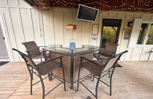 Spend time at this charming cottage on Kincaid Lake, Ky. This welcoming retreat features 1 bedroom with a cozy queen bed, a sofa bed, fully equipped kitchen with a coffee bar, and WIFI for your favorite streaming services. Enjoy outdoor amenities including a canoe, two kayaks, firepit, and an outdoor patio bar with TV on the spacious, covered deck, or opt for the open side deck for your nightly star gazing. You can bring your own boat and dock it at the cottage or fish right off the dock. Just minutes away from Kincaid Lake State Park, you have access to a nine-hole golf course, pool, hiking trails, putt-putt golf, basketball, playground, and more. A 27-mile drive to the Arc Encounter in Williamstown makes this a great location for your stay. Make your reservations today for a memorable getaway!