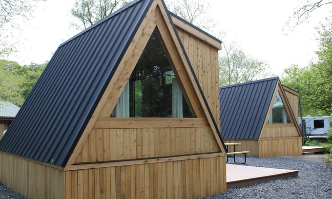 Come stay in of our super Cozy one bedroom cottage with queen bed, table for two, mine refrigerator, coffee maker, heat, ac, comfy linens, towels, blackstone griddle, fire ring, picnic table, two addirondack chairs, river view, campground bath house and shower is only 50' away. Shared access to hot tub and sauna.