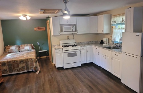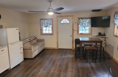 Consider this cabin your home away from home while you visit Stewartstown. This adorable property offers a cozy one room cabin, with a nice sofa bed for extra guests and full kitchen. Direct Snowmobile and ATV Trail access. Enjoy the soothing atmosphere with WiFi, AC, and heating available. This cabin comes with all the amenities of home including, cookware, dinnerware, glasses, utensils, coffee pot, coffee, sugar, creamer, toaster oven, shampoo, conditioner, soap, towels, linens, TV, DVR. BBQ (gas provided) and firepit This cabin is perfect for a small family looking for a relaxing getaway. We think our place will help you experience everything the North Country has to offer. Also offers full access to near by Ladd Pond Cabins and Campground with hiking trails, paddleboats, kayaks, Jon boats, swimming and fishing (no license required). No charge for amenities.