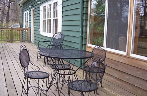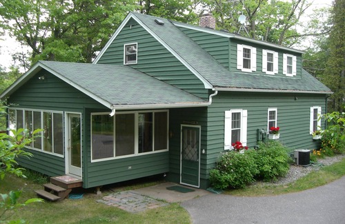 This cottage is beautifully decorated with wood floors through out. It also features a four seasons porch, deck, dock, outdoor fireplace, washer/dryer, central air, TV, ping-pong table and more.