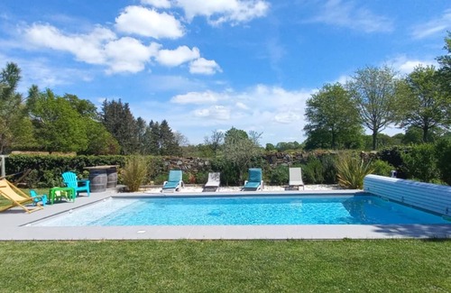 Charming, peaceful residence with swimming pool and Nordic bath is located in Jourgnac. Charming, peaceful residence with swimming pool and Nordic bath provides accommodation, featuring Laundry, Security/Safety, Bedding/Linens, among other amenities. This House features Laundry, Security/Safety, Bedding/Linens, to make your stay a comfortable one.