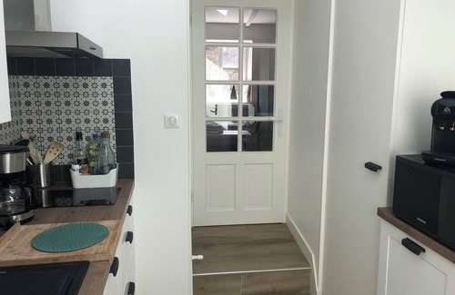The recently renovated kitchen is a bright and fully equipped space. With an oven, induction cooktop, dishwasher, refrigerator-freezer, microwave, and small appliances such as a coffee maker, kettle, and toaster, you have everything you need to prepare delicious Breton meals. Its direct access to the garden and veranda makes outdoor dining effortless.