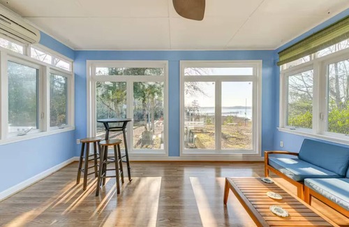 Indoors: Relax in two cozy living areas equipped with Smart TVs, or enjoy a good book by the water view. The 4-season sunroom offers a perfect spot to soak in the views year-round.