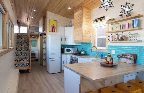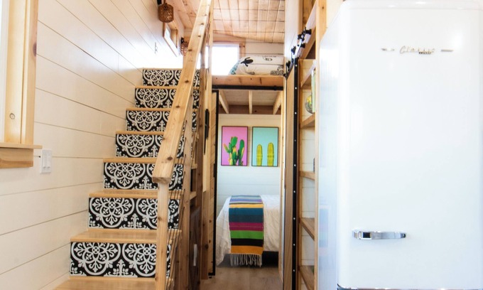 Our Phoenix tiny home awaits your desert getaway. Nestled in a tranquil setting, this beautiful retreat offers a private bedroom w/ queen bed, a cozy living room with a sofa bed, and a loft with two floor mattresses perfect for a slumber party. Enjoy the brilliant Arizona sunshine while relaxing by our resort-style pool* with your own private lounging area.