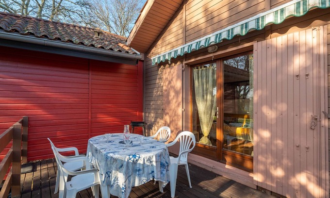 Near Lake Sanguinet, we offer a 62m² chalet that can accommodate up to 4 people. Perfect for a weekend or a week with family or friends.