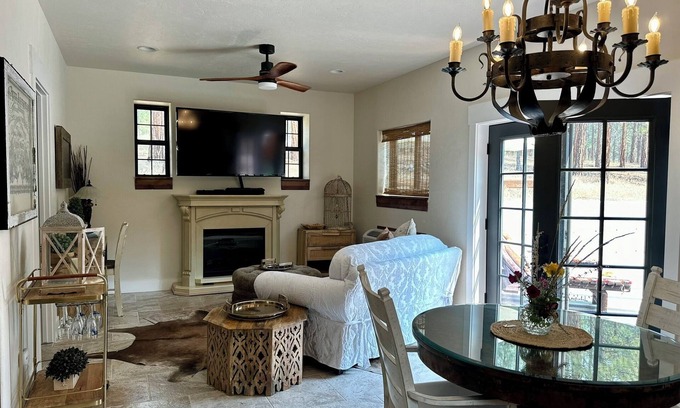 Tranquility is waiting for you at this fabulous 1-bedroom Cottage. Nestled in a private setting amongst the Ponderosa Pines, This cozy retreat features custom finishes & spacious Spa like bathroom with a freestanding bathtub & rainshower. Also enjoy the many essential amenities like WiFi and AC/Electric heat as well as an elecric Fireplace. And Oh! the wildlife! Experience the magic at The Cottage.
