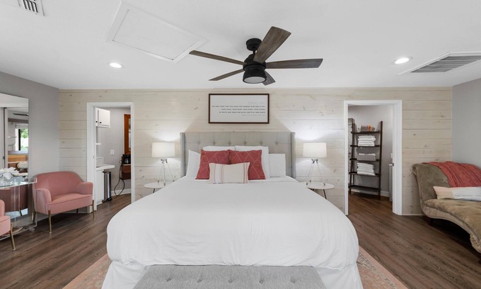 Whether you’re here for a quiet retreat or a fun-filled getaway, this unique space provides a one-of-a-kind experience just minutes from everything Waco has to offer. Located only 15-20 minutes from Baylor University and Magnolia at the Silos in downtown Waco, it’s the perfect spot to enjoy local attractions while returning to the calm of nature at the end of the day. If this room is available, then you are in luck because this room is part of a total property listing that includes ALL 20 rooms, and is usually rented out as the whole property for retreats and reunions. No daily hotel service or breakfast options. Fire pit, patio furniture, pool, seasonal hot tub, and outdoor games are all shared spaces.