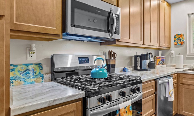 Unwind in the peaceful 2-bedroom, 1-bathroom duplex, beautifully furnished for a comfortable stay. This charming home offers a warm and inviting living spaces ideal for families, friends, or business travelers seeking a relaxing getaway. Enjoy a thoughtful welcome package featuring complimentary coffee, toiletries, and snacks upon arrival. Just a short 5-minute drive from the highway, this neighborhood offers easy access to local dining and entertainment options, perfect for exploring.