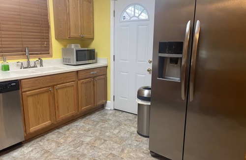 This Charming Ranch is your home away from home. It is in a family-oriented neighborhood less than 5 miles from Hartsfield International Airport with close access to the interstate and 15 minutes to downtown Atlanta. You will enjoy every aspect of the home. The home has two bedrooms and two bathrooms, a room with a treadmill, and a workout bike. You can work out, spend quiet time in the fenced backyard, and chill while enjoying the smart TV in the living room and the primary bedroom.
