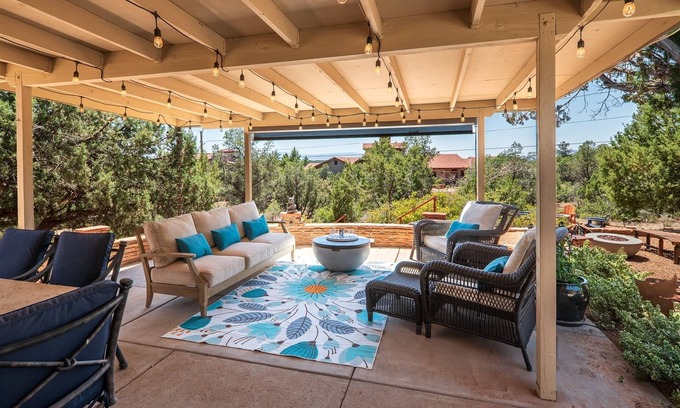 Welcome to Red Rock Bungalow, a private pet-friendly 2BD, 2BA West Sedona vacation home nestled on a serene 0.5-acre lot in a quiet West Sedona cul-de-sac. This charming ranch-style home boasts designer interiors and the ultimate entertainer’s dream backyard with two patios, a firepit, a bocce ball court, a brand new hot tub, and more!