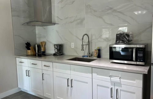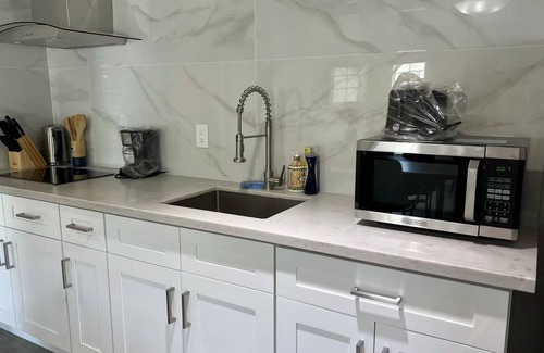 This Baldwin Park house boasts 2 inviting bedrooms with 1 king bed and 1 queen bed. The bathroom is equipped with a shower and a hair dryer. Kickback, relax, and enjoy everything Baldwin Park and our adorable house has to offer.upgraded morden 2bed1 bath with a small kitchen located in the heart of Baldwin park . Easy access to nearby dining , shopping and transportation