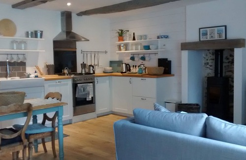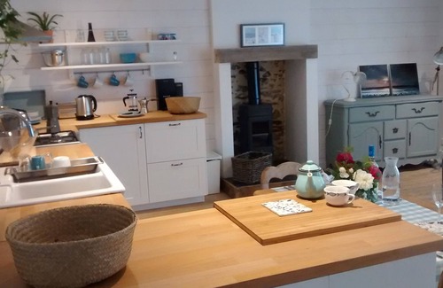 Les Galets is a charming renovated south facing cottage situated in a quiet corner of Pleslin off the main road in a group of stone houses and barns and just 4km from the Rance estuary in Plouer and in the heart of the touristic region Côte d'Emeraude. It has recently been renovated to a high standard to be a romantic charming and cosy retreat both in the summer and winter. It has preserved some of its old character features like beams tastefully incorporated with more contemporary features, restored furniture sourced from the UK adds to the charm. There is solid oak flooring throughout from the local Pleslin saw mill. The ground floor attractively combines kitchen/dining/living and includes everything you need for a comfortable stay. There is a feature fireplace with wood burner and also Electric wall heating. TV is via the French orange internet service. WiFi is free and of excellent quality. The backdoor leads out to a newly created enclosed back garden area with terrace decking, garden table and chairs, beyond the fencing is a larger grass area and orchard in common with next door holiday cottage Les Embruns.1st floor has a spacious south facing landing area with small table and chair for laptop working if necessary. There is a south facing double bedroom with 2 standard single beds, clothes storage and Electric wall heater. The WC is separate from the bathroom which has both full size bath, walk in shower, basin space with shelving storage and heated towel rail. Further stairs lead up to the 2nd floor master bedroom under the eaves and original beams. This space is a very large romantic and characterful with a king size (160cm) bed, bedside tables, chest of drawers, table, 2 chairs, dressing table with stool, clothes hanging rail and French antique child bed. (Spare futon mattress available under this bed) Also nearby is Tremereuc (9 hole) golf course and Dinard/Saint Briac 18 hole seaside golf course. Sailing clubs, stables. Voie verte cycle/hike/bridleway, this is the transformed defunct railway track from Dinard to Dinan (23km) which closed in the 80’s and can be accessed within 4/5 minutes walk of the cottage. The commune of Pleslin has a bakery, resto/pizzeria La Lanterne, minimart grocery store, pharmacy, cultural centre, town hall and post office. It is well known for its megalithic standing stones Druid burial site. Coastal sea boat excursions are available by compagnie Corsaire and I highly recommend taking the sea bus from Dinard to Saint Malo when planning to visit. Aquarium : Saint Malo. Zoo : La Bourbansais at Pleugeuneuc between St Malo and Rennes. Water park ‘AquaMalo’ at St Joan des Guérets. Restaurants and crêperies in abundance in even smaller towns especially on the coast (Pleslin has a Pizzeria La Lanterne)