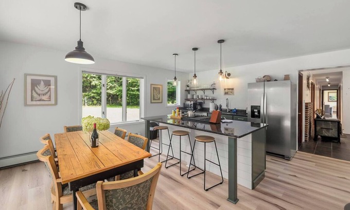 This cozy and bright 4-bedroom plus bonus room ski house in Stowe, VT is perfect for families or groups seeking a comfortable and convenient base for their winter vacation. Nestled in the secluded Hollow section, the home offers stunning forest views and easy access to the Mountain Resort and historic downtown Stowe. Inside, you'll find a fully-equipped kitchen, comfortable living room, and tastefully decorated bedrooms. Relax on the spacious deck and take in the beautiful natural surroundings.