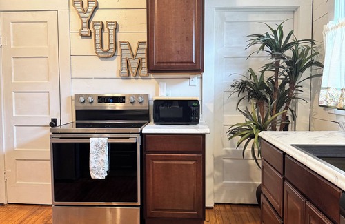 After a day of exploration, unwind in our comfortable 1 bedroom home, complete with plush bedding and ample storage space. The fully equipped kitchen allows you to whip up delicious meals with ease, or you can venture out to sample the local cuisine at nearby restaurants. If you decide to cook the kitchen is fully stocked to cook, bake or craft morning coffee to enjoy on the porch.