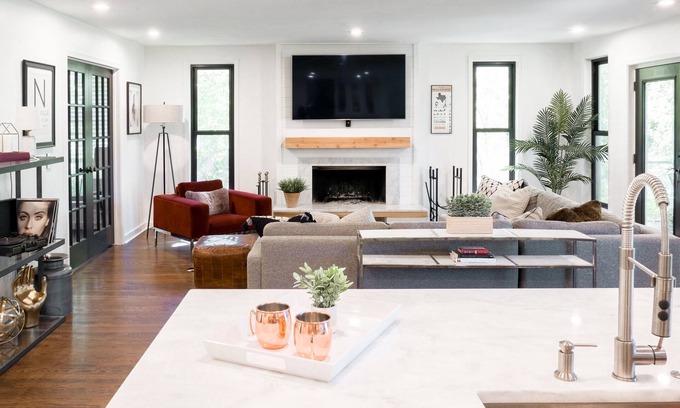 Our spacious, one-story home is centrally located allowing you to explore the iconic spots in Nashville while offering a quiet retreat from the hustle and bustle of the day. Enjoy your morning coffee while planning your adventures from our back porch swing, or unwind from the day with a glass of wine on our patio deck overlooking the 17th fairway of Nashboro Golf Club. Nature-lovers love nearby Percy Priest Lake and Long Hunter State Park for swimming, hiking and water sports rentals all less than 10 min away. Enter our home with a gorgeous view of the Nashboro golf course, a large waterfall marble island in the kitchen and spacious seating in the great room with an open floor plan. Perfect for groups traveling together. Enjoy comfortable conversation throughout the kitchen, living room, and dining room.