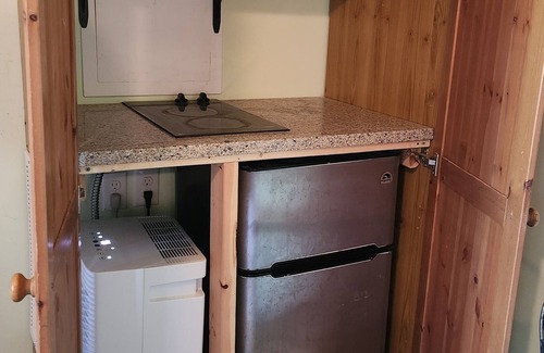 The River Cottage is a completely separate 1-bedroom unit with a wood-beamed ceiling, full bath with large shower, and an armoire kitchenette that includes a refrigerator, coffee station and microwave.