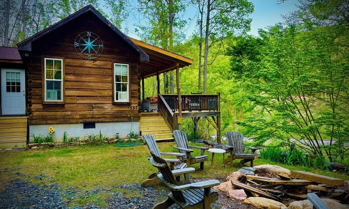 - Charming riverfront 2-bedroom cabin with hot tub, WiFi, AC in Green Mountain Nc