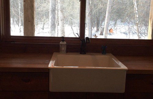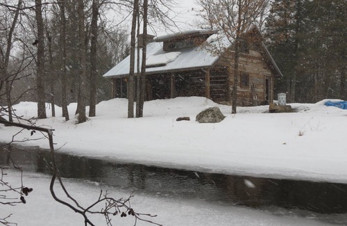 Our river paradise is a post and beam log cabin built with reclaimed turn of the century hand hewn barn beams. Rustic and charming with all the modern conveniences. Set on the bank of one of Wisconsin's finest trout waters, the N Branch of the Pike River.
