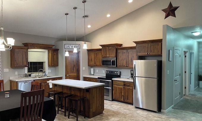Welcome to your perfect getaway! This charming vacation rental features three spacious bedrooms and a beautifully designed bathroom, making it ideal for families or groups seeking comfort and relaxation. The heart of the home is the stunning kitchen, equipped with modern appliances and ample counter space, perfect for whipping up delicious meals.