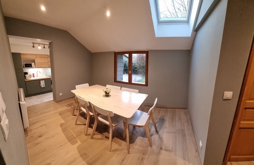 The cottage is about 70 M² located in the town of Buysscheure, town of Flanders. The cottage is adjoining the owners' home, located in the heart of the village of 580 souls, in a very calm and green environment, and at the start of many hiking trails and near the marshes of St Omer. The cottage has independent access, a parking space, a private garden of 500 M² bordered by a secure pool and a terrace of about 16 M².