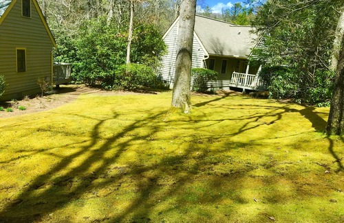 Sapphire Place is the "gem" of all vacation rentals and is brand new on the vacation market with all of the extensive and fun-filled Sapphire activities and amenities. Tucked in the woods in the heart of Sapphire Valley, this secluded 2 large bedrooms/2.5 baths has undergone a recent and total upgrade featuring soaring, mountain-inspired pine planked ceilings, granite countertops, SS appliances, wood floors, new plush leather furniture, unique rustic mountain decor with a touch of eclectic modern features that you will love!! The new, fully stocked kitchen has everything you'll need for simple cooking or extreme dinner parties!! Wake up to singing birds in the spacious master bedroom with a king bed you'll melt into and private master bath, walk-in closet and double glass sliding door opening onto the rear deck. The living room features an entire wall of large windows from floor to ceiling for light, airy, sunny days in the cool mountain air. Turn on the fireplace with a press of a button to enjoy chilly summer nights or chillier winter days, while enjoying a movie from the stocked DVD library. Enjoy the back deck, nestled privately in the woods, under the large umbrella while enjoying an evening cocktail, or grilling on the BBQ. Secluded upstairs is another large bedroom with a scrumptiously comfy queen bed and private, large full bathroom. Bedrooms are plushly carpeted for extra comfort on those cold mornings, with large flat screen TV's and a deluxe channel line up. Netflix, Amazon Prime and Hulu in the living room with a supply of soft, warm afghans to cuddle in and watch your favorite show in front of a roaring fire. Warm, low-level ambient lighting automatically comes on at dark for extra inviting mood setting.