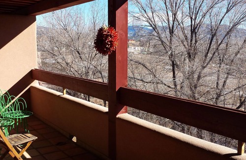 This two bedroom Southwest-style condo is perfect for a weekend getaway or a longer stay. A block from Gardunos and overlooking downtown, this beauty shows that you don't have to chose between "close" and "comfortable". Enjoy drinks and the quiet Santa Fe air on a roomy balcony after sunset to top off a perfect day in the land enchanted.