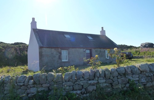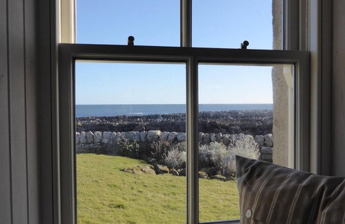 Charming fisherman's harbour cottage, just renovated to highest standards. Bedroom (large double bed), with sea view. En suite bathroom (bath, shower, WC, basin, heated towel rail). Living room including kitchen, window with sea view, French door and large window to back garden. Sofa, two arm chairs, dining table with 4 chairs, wood burning stove. All kitchen new (Induction hob, electric oven, dishwasher, washer/dryer, microwave, kettle, toaster). Fully insulated. Electric heating and water. Garden at front (daffodils, lupins, roses) edged by low stone wall with rocks and sea beyond. Back garden sheltered and lovely to sit in during evenings. House approx 10 m x 4 m. Garden in approx 110' by 180'.