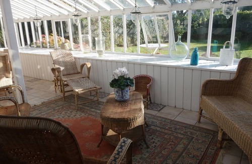 ---A real family home, bright and warm, in a calm and preserved environment, ideally located 300 meters from a beautiful sandy beach (Blue Flag), lined by the Gulf Stream and facing Jersey. Multiple activities within easy reach (sailing school, riding school, golf, yachting, etc.). The house is arranged in a “west coast” spirit, mixing all styles, actual, old, with both exotic and classic touch. It is arranged so that you feel immediately welcome, with many games, toys, DVD, a large flat screen (42'), Satellite channels, Netflix, available. Beautiful grand piano, many scores … for confirmed musicians !