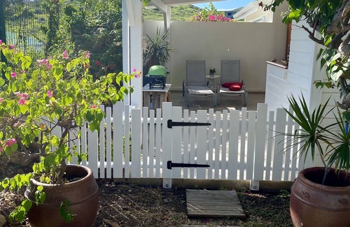 It is connected to our house but has its own entrance. You will enjoy the wide terrace in the tropical garden and the stunning ocean view of Orient Beach and Green Caye island. Another asset is the privacy and quietness of this charming place.