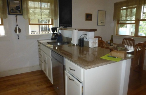 The Be Chill Cottage is only a block from the crashing surf. It offers leisurley strolls by the seashore, the salt air and sea roses. This lovely house has a master bedroom with a queen-size bed, a second bedroom with a double-bed and a fold out couch in the main living area. The kitchen has granite counter tops, new appliances and is updated with all the essential kitchen equipment for that perfect meal. Best of all it has the essential lobster pot! The living area is quite spacious and open throughout. It offers internet and cable TV. The front deck perfect to sit out and watch the sunsets. The back deck walks out into the grassy yard that has a gas barbecue, picnic table and Adirondack chairs for those unforgettable evenings on Peaks Island.